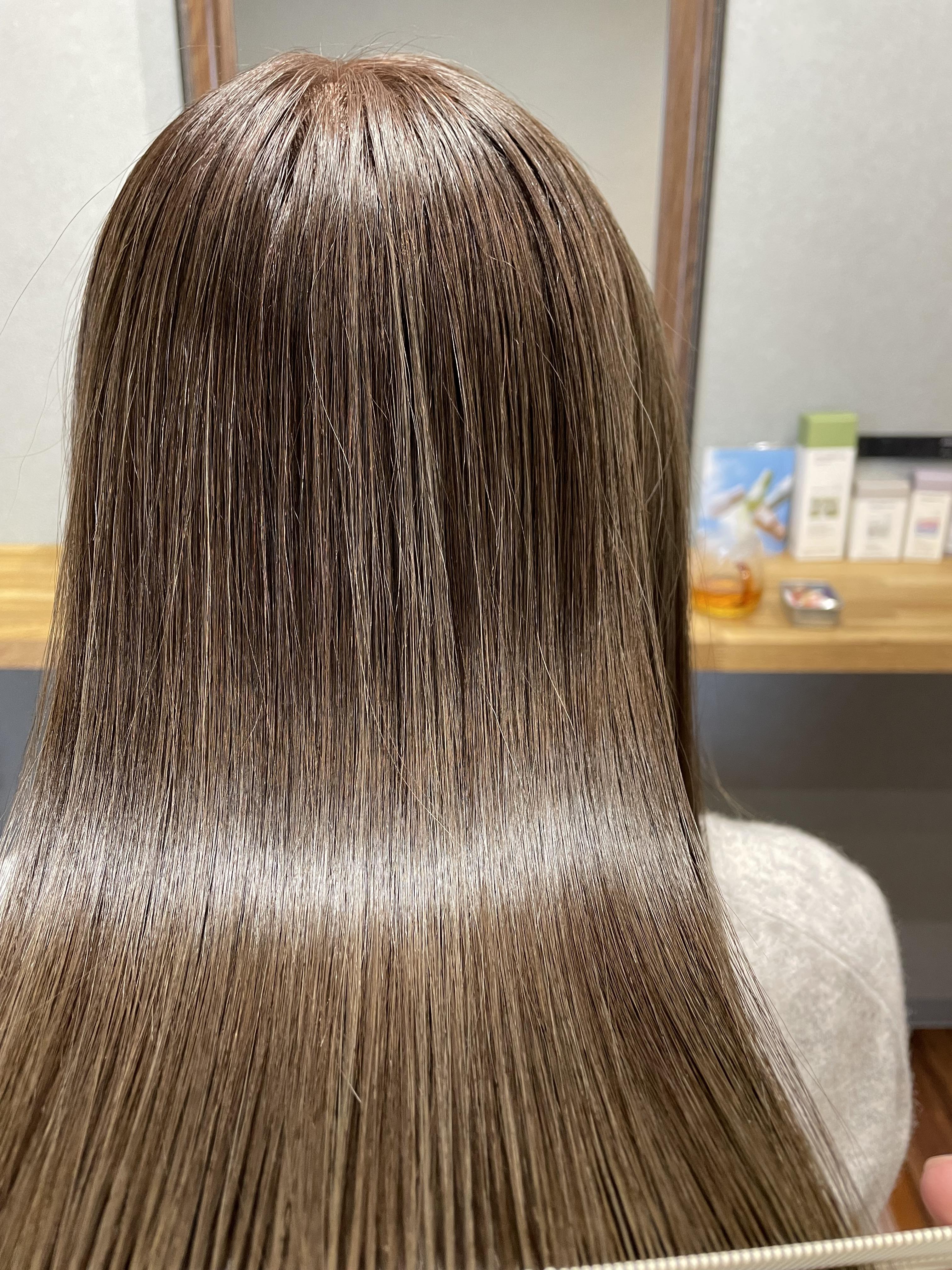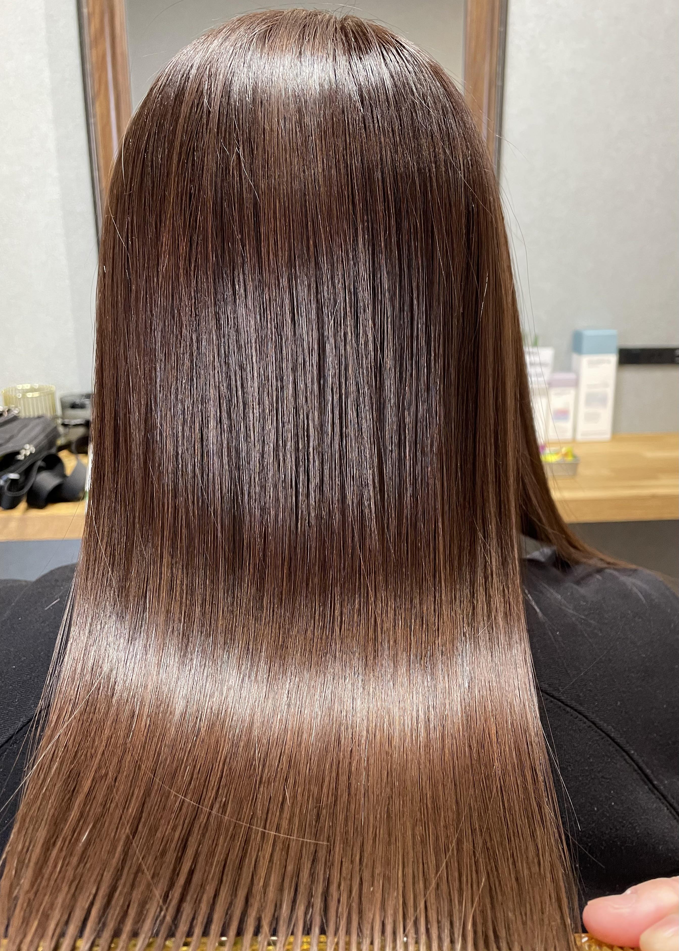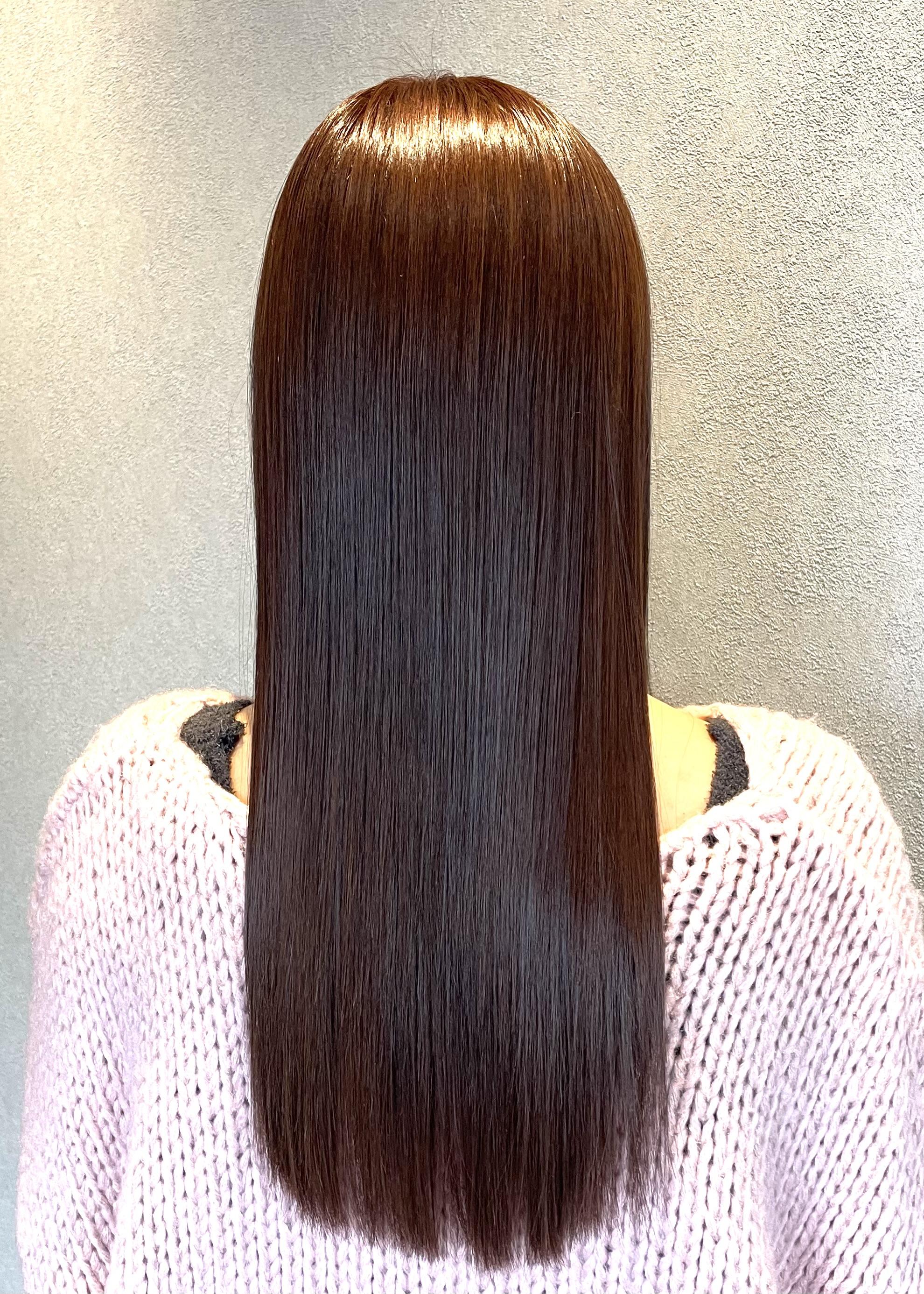 酸熱トリートメント成分配合の縮毛矯正剤を使用し、ダメージを最小限に抑えながら酸熱トリートメントの効果で最高の手触りに✨ カラーを定期的にされている方や、エイジングにより髪が細くなってきた方、ダメージを抑えたい方にオススメの縮毛矯正メニュー