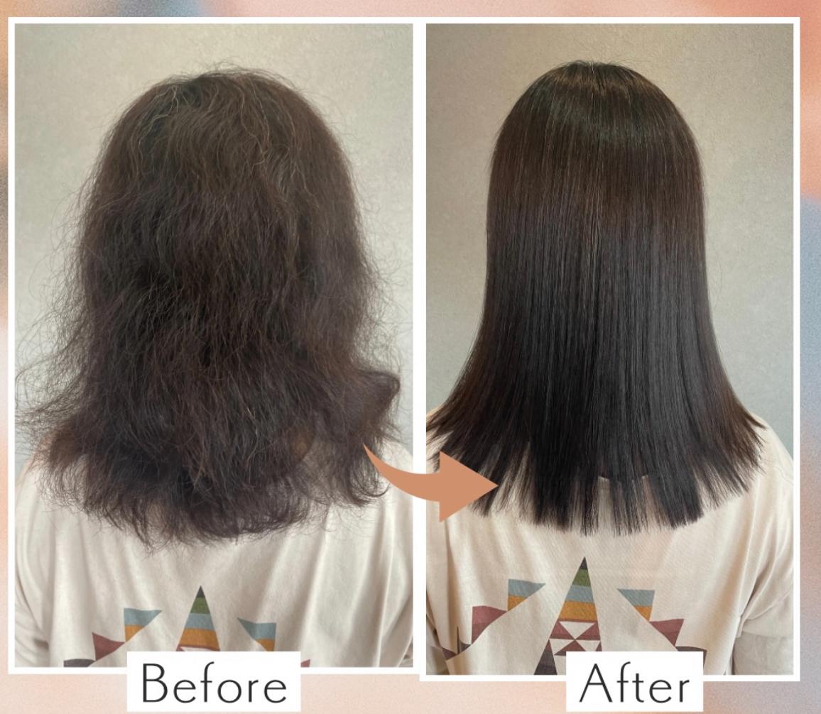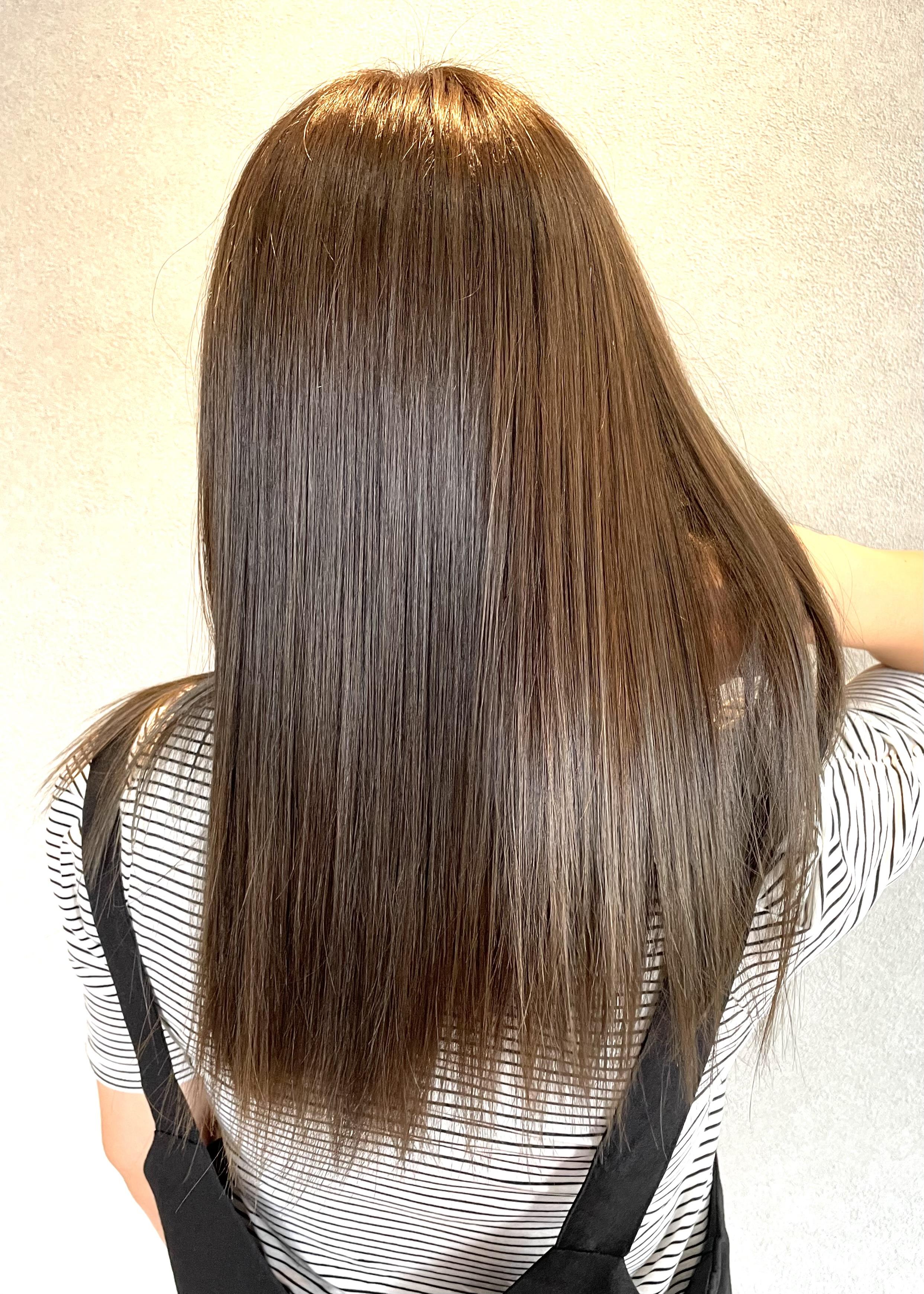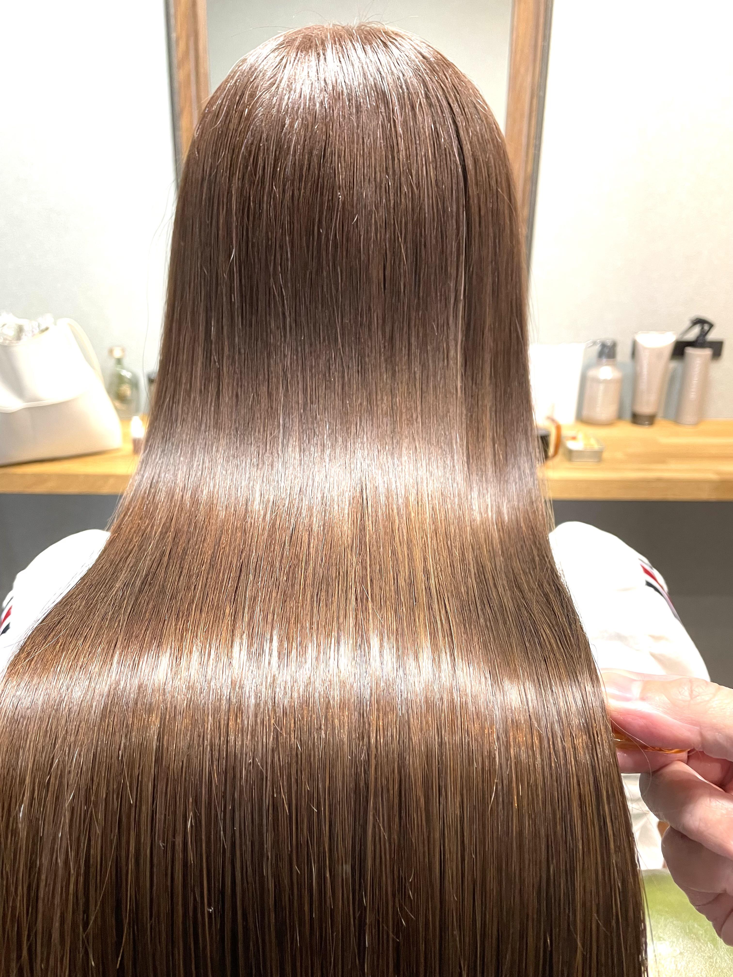 酸熱トリートメント成分配合の縮毛矯正剤を使用し、ダメージを最小限に抑えながら酸熱トリートメントの効果で最高の手触りに✨ カラーを定期的にされている方や、エイジングにより髪が細くなってきた方、ダメージを抑えたい方にオススメの縮毛矯正メニュー